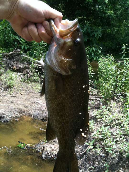 Anyway, fished until around 1pm.  Caught a couple more BG and a SMB.  There were a lot of little fish swarming around biting my calves while I was wading...